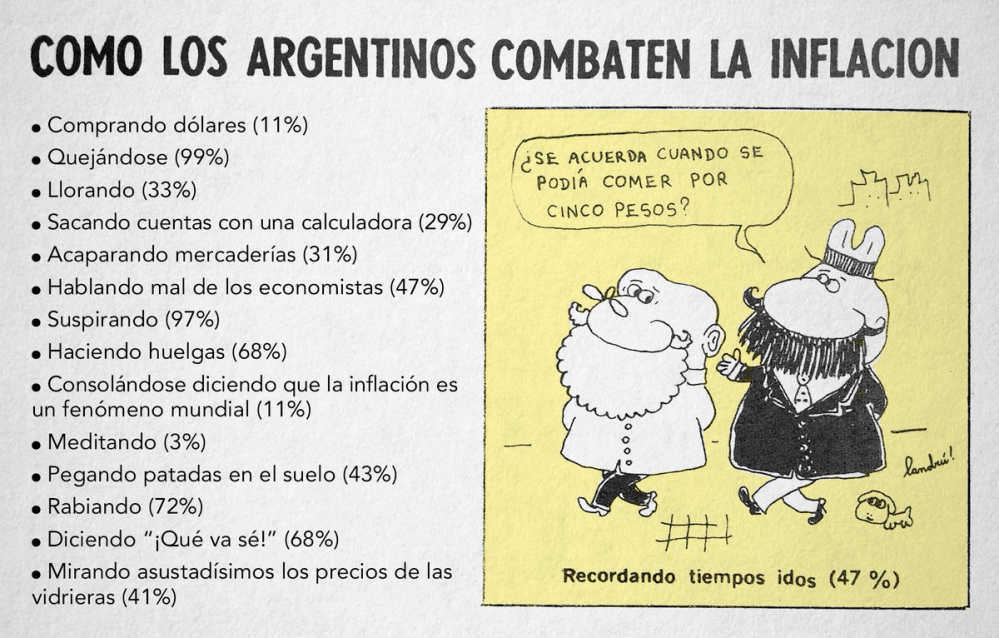 Las viñetas de los humoristas y diseñadores gráficos son, a veces, un testimonio agudo de la cultura de un pueblo: Erlich, Landrú, Viuti, Caloi, Crist, Rayma, Nick, Fontanarrosa, Quino, Tabaré, Paz-R (a confirmar). Y dos especiales de Tato Bores.